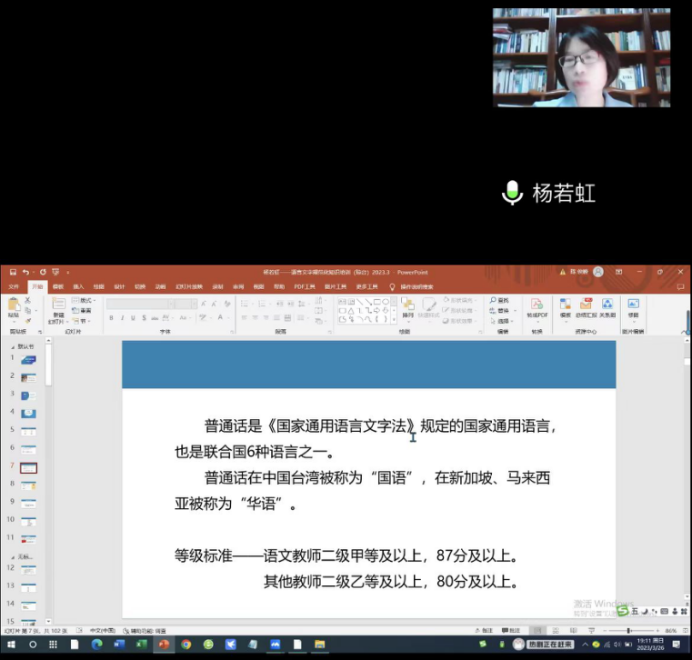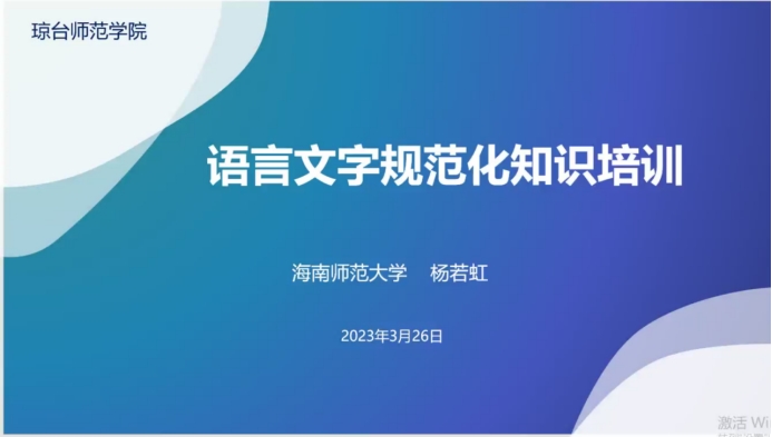 为进一步贯彻国家语言文字方针政策和法律法规,大力推广和规范使用国家通用语言文字,有效加强国家通用语言文字教育,122cc太阳成集团于3月26日邀请国家级普通话水平测试员、海南师范大学杨若虹副教授开展了语言文字规范化知识讲座。本次讲座由教务处处长石晶主持。
