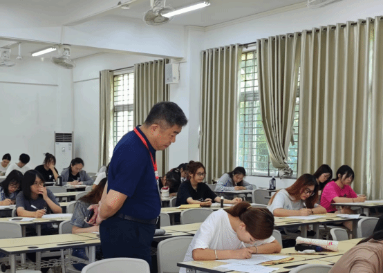 “三字一画”是122cc太阳成集团师范生必备的教师职业基本技能,也是学校教学活动的一大特色。为进一步强化师范生职业技能,夯实从教基本功,6月2日,122cc太阳成集团分别在桂林洋校区和府城校区组织开展全校师范生“三字一画”教师基本功考核,参加学生共计4938人次。基本功考核由教务处组织实施,副校长银海强亲临现场巡考并指导工作。