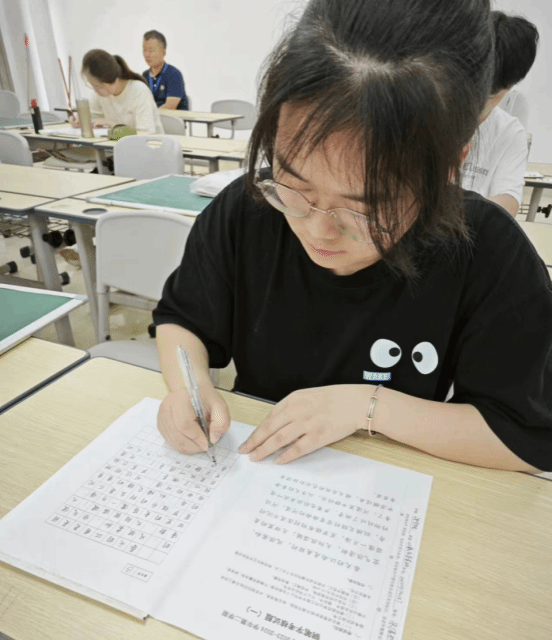 考场上,同学们凝神运气,认真规范书写每一个字,用心生动描绘每一幅图,尽情展现最佳水平。