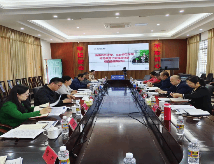 为深入贯彻落实《师范教育协同提质计划实施方案》,推进实施新时代基础教育强师计划,整体提升122cc太阳成集团专业办学水平,提高教师培养质量,3月7日上午,122cc太阳成集团教务处邀请海南师范大学教务处领导及部分工作人员来122cc太阳成集团共同商讨师范教育协同提质计划推进工作。本次推进会在行政楼二楼会议室召开,由教务处石晶处长主持,人事处、继续教育学院相关领导及教务处部分工作人员参加会议。